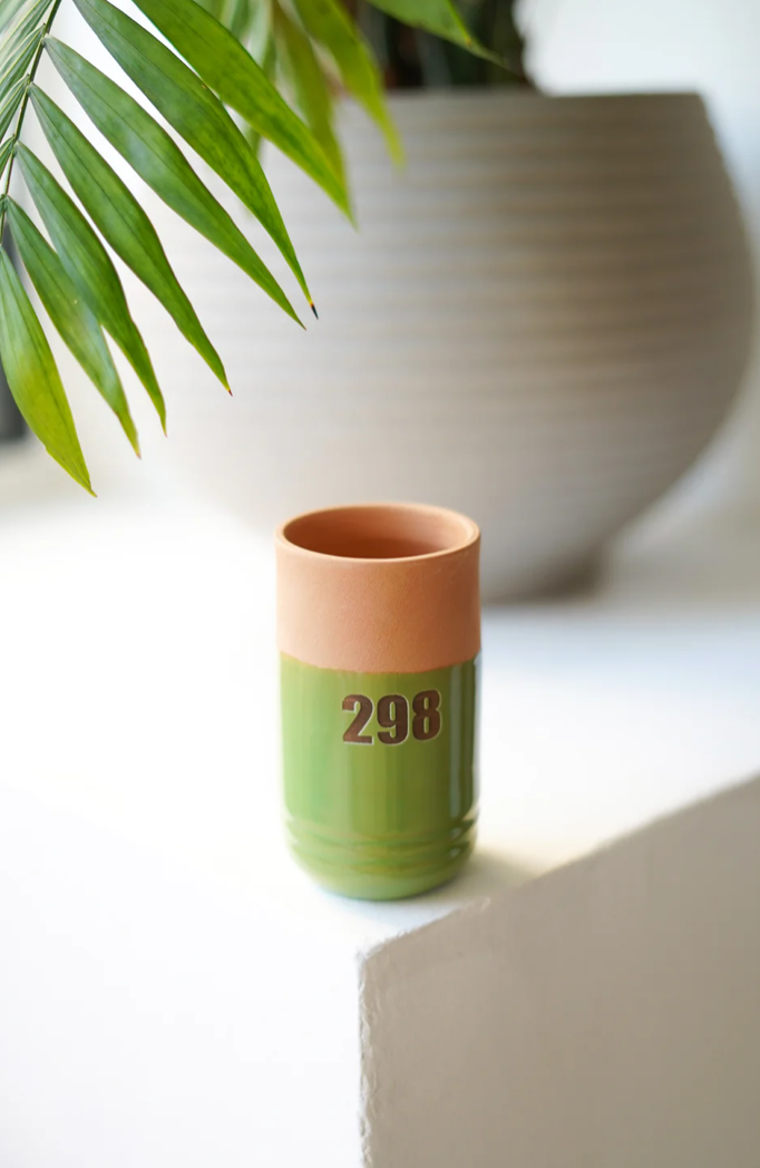 A distinctive clay cup available in a range of beautiful colors.